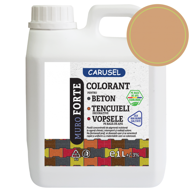 1.Descriere produs: Colorant lichid pe baza de apa, cu continut ridicat de pigmenti rezistenti la agenti chimici, intemperii si radiatii solare. or si se omogenizeaza rapid cu toate tipurile de betoane, tencuieli decorative si vopsele pe baza de apa.